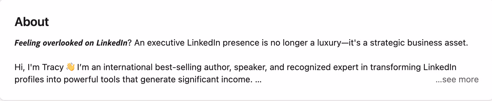 Here’s an example from LinkedIn guru Tracey Enos: