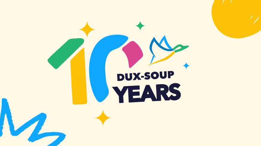 This month marks 10 years of Dux-Soup, and we couldn’t be more thankful for the 300,000+ users who’ve been part of the journey - putting it bluntly, we couldn't have done it without you! From day one, your feedback, creativity, and trust has helped shape what Dux-Soup is today.